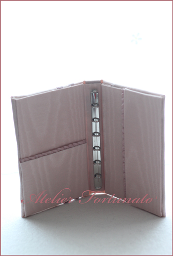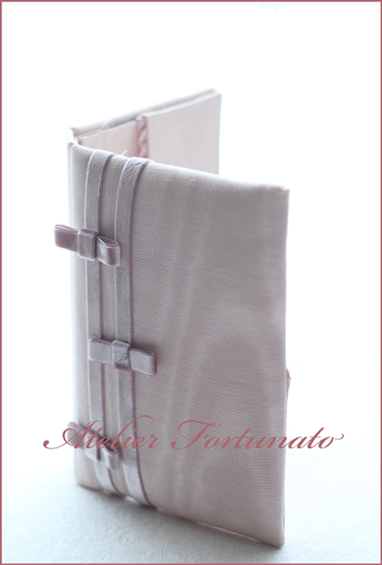 装飾をしたいからとピンクモアレのお生地を選ばれて