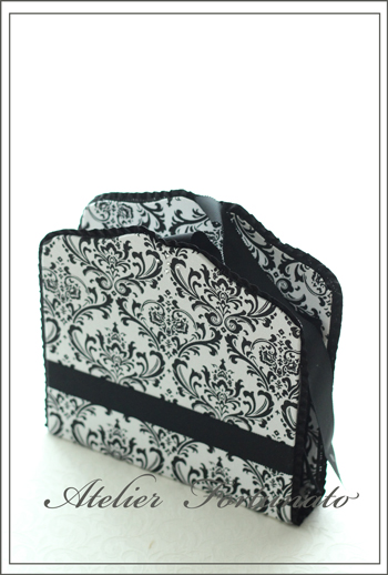 お見本と同じ白黒ダマスクのお生地を選ばれて