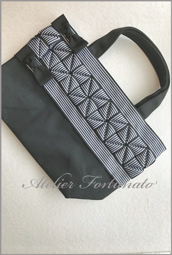 2018年9月12日 / 最終更新日時 : 2018年9月12日 Atelier Fortunato aN. リボンバック~~~(*^_^*) こんばんは~~ Atelier Fortunatoです 今日は雨が一日降ったりやんだりで 足元が悪かったです 一日母の病院の付き添いでちょっとお疲れです((+_+)) 先日ANTHバックを作られた妹さんの バックのご紹介です 最後の装飾のおリボンが違うんです ちょっとしめたいからと blackのおリボンにされました こちらも素敵ですね♥ FacebookXBlueskyHatenaCopy