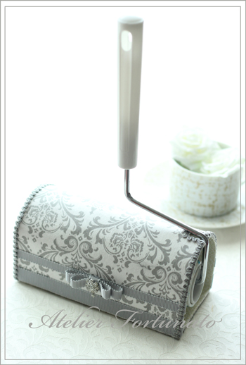 2016年4月17日 / 最終更新日時 : 2016年4月17日 Atelier Fortunato カルトナージュ 大人なコロコロケース~~(^_-)-☆ こんにちは~~ Atelier Fortunatoです ご好評いただいている 1DayLesson コロコロケース ちょっと頼まれて 作ってみました グレーのダマスクのお生地を選ばれたので 装飾は合いそうなものを 私の独断で付けさせて頂きました グレーのグログランリボンに グレーのブレードとビジュー 気に入って頂けて お持ち帰りです FacebookXBlueskyHatenaCopy