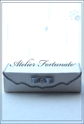 白地のお生地にグレーのブレードとおリボンに